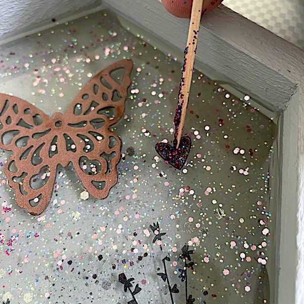 But, if you’re looking for a project you can make in an afternoon, this isn’t it. Completing this project will take 5 to 7 days because you’re pouring in layers. You’ll add items at different layers to make the box look like a diorama. Have patience – you’re going to love how this finishes.