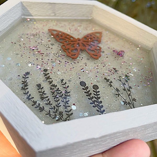 Add a bit of glitter. Resist the urge to fill your resin with enough glitter so astronauts can see it from space. Or not. Make wall hanging crafts that ooze with your ideas. 😉